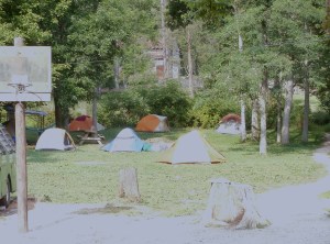 We decided to eat outside at one of the picnic tables under a big, old sycamore. It was there I noticed that the tents went on farther than I’d first thought. I’d guessed there were a dozen. Once I looked into the shady area off the hill, I could see that they were right on top of each other; a regular tent city. There must have been about 50 tents.
