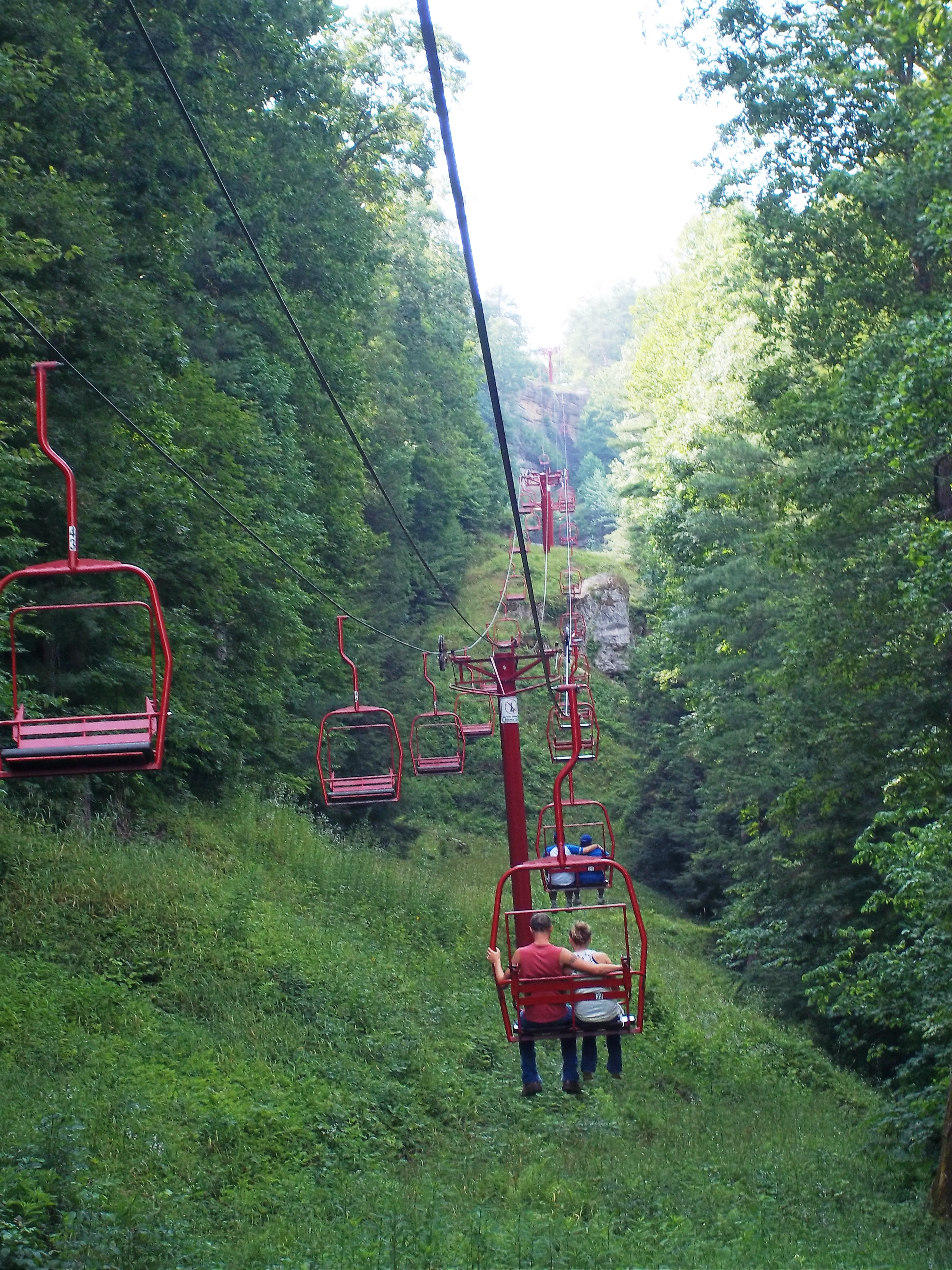 But the next day, we skipped the trails altogether and took the skylift to the top. I love skylifts and take them whenever I have a chance. I have to tell you, this was the smoothest, quietest, most peaceful skylift ride I have ever taken. Our feet dangled above lush green ferns and soft pines. It was incredibly relaxing and much enjoyed.