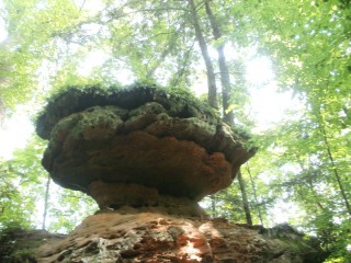Then we took a different trail down; a steeper trail named Balanced Rock Trail which had so many stairs that our calves were burning by the time we reached the bottom. This trail, with its many-colored stones, a cave entrance, and balanced rock, is much more picturesque. Nature photographers often set up equipment on this trail. We snapped quite a few pictures, too.