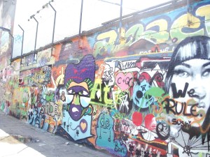 Then, I veered off down an alley that was very modern in its street art graffiti and was a vast playground of shiny color in this otherwise austere town.