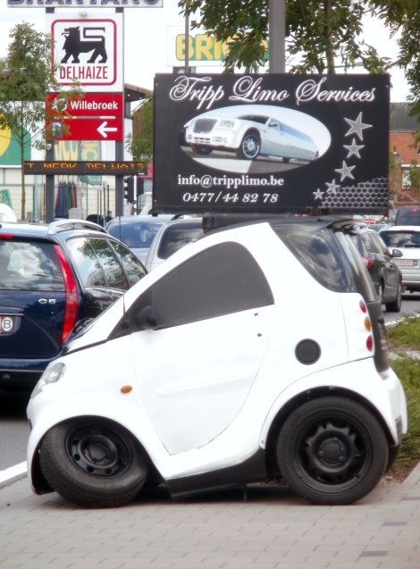 I’m not sure whether this wonky-wheeled Smart car would encourage me to hire a limo or not. My initial reaction was that this Smart car would be the limo. And I’m not yet convinced that I’m wrong.