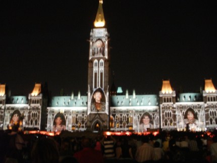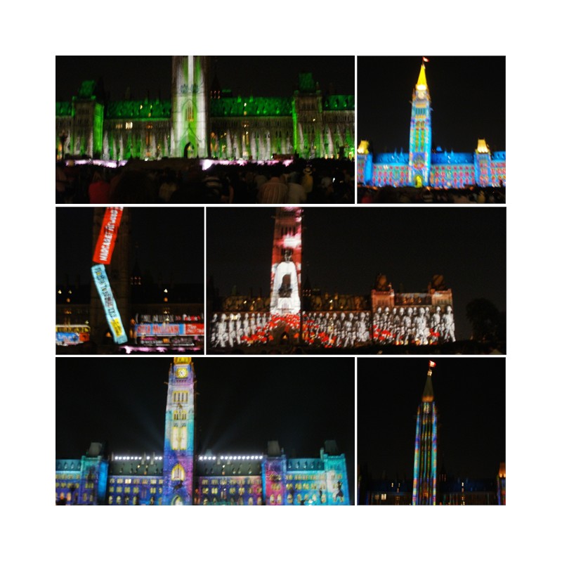At least half of my pictures from Ottawa are pictures of the Parliament building. I have pictures during the daytime; pictures during the changing of the guards; pictures on Day 1 and more on Day 2; and lots of pictures of the Parliament building at night. That’s when they do Mosaika — a narrated laser-light show that tells the story of Canada’s history. They do it every night at 10pm July-September and it’s completely free. Thousands of people gather on the lawn and ooh and aah over the spectacle of it. I’m not sure everyone took minute-by-minute pictures like I did. But I think everyone enjoyed it.