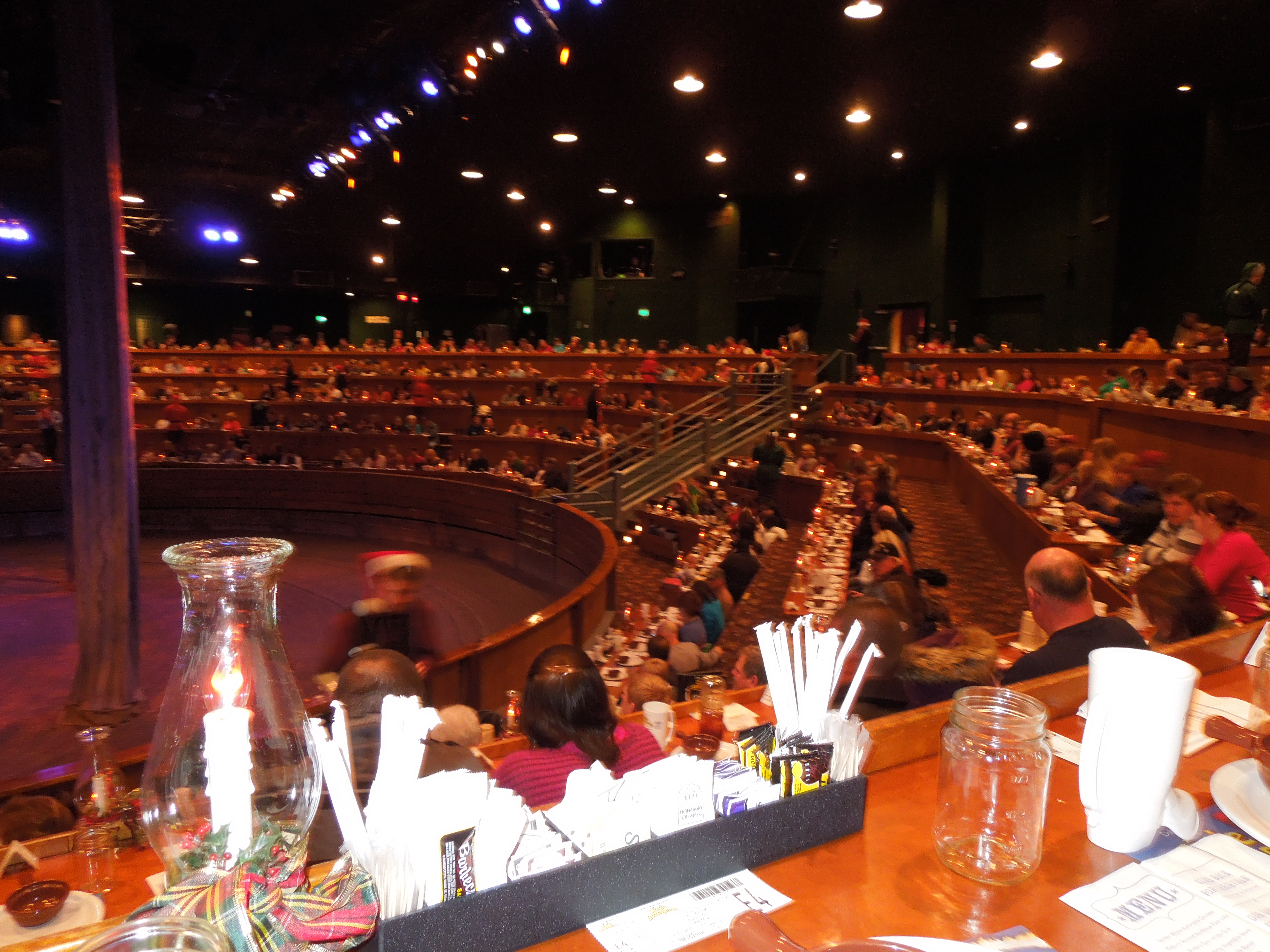 But it doesn’t really matter which side you sit on. All seats offer a fantastic view of the horse-riding, lumberjack, and musical numbers they do down in the arena.