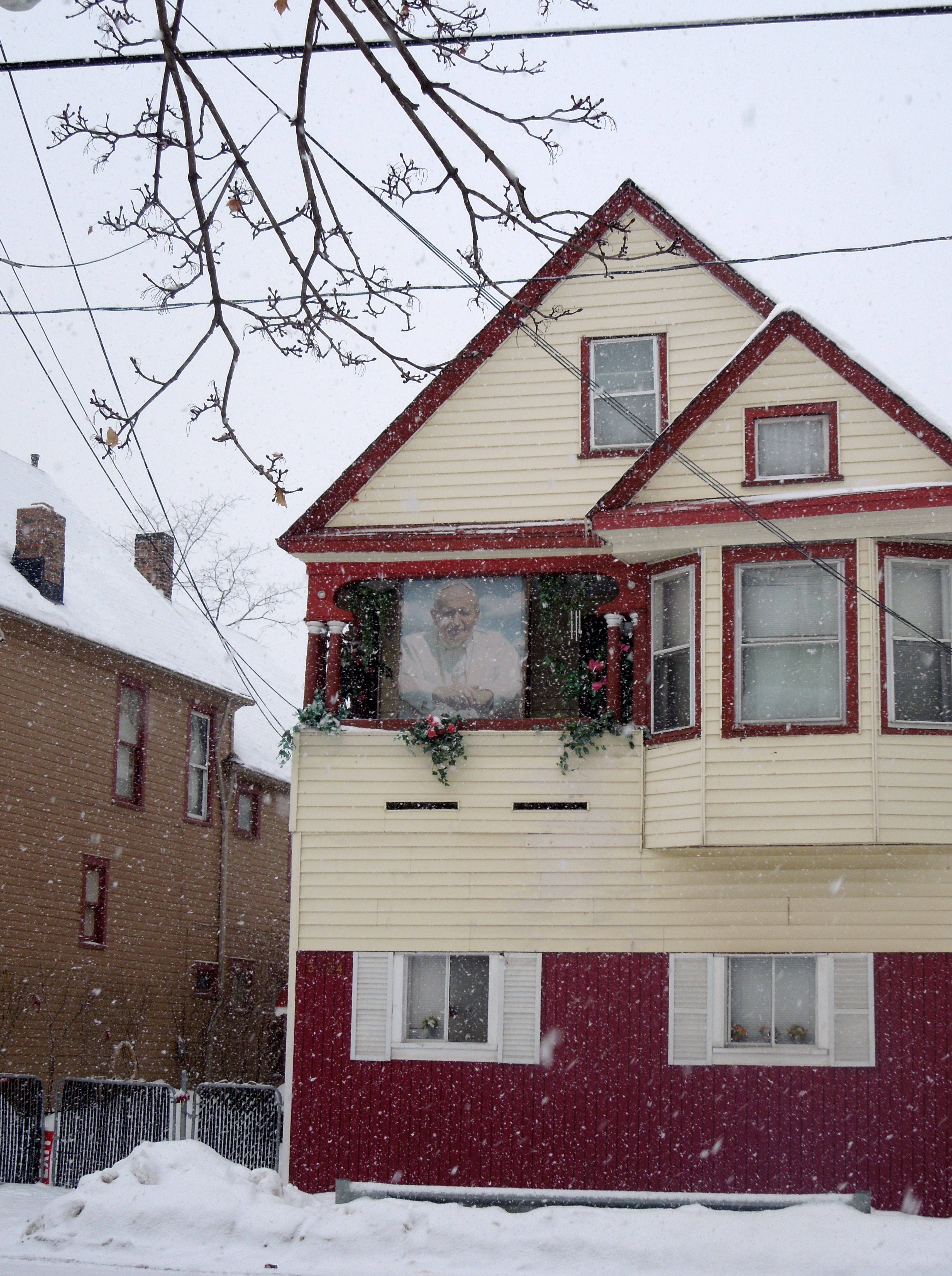 We aren’t Catholic and don’t know a word of Polish, but felt such calm and reverence there. The mass was beautiful and the church was completely packed. Over a hundred people filled the pews. Some young, more old, and a few children being brought up in the old traditional ways. If I’d wondered at all whether the Polish tradition of Slavic Village had fallen by the wayside, I was answered here. Hundreds of voices sang and prayed together; people who’d weathered the snow to come to the 10:00 mass in Polish. The Slavic heritage of Cleveland seemed alive and well.
