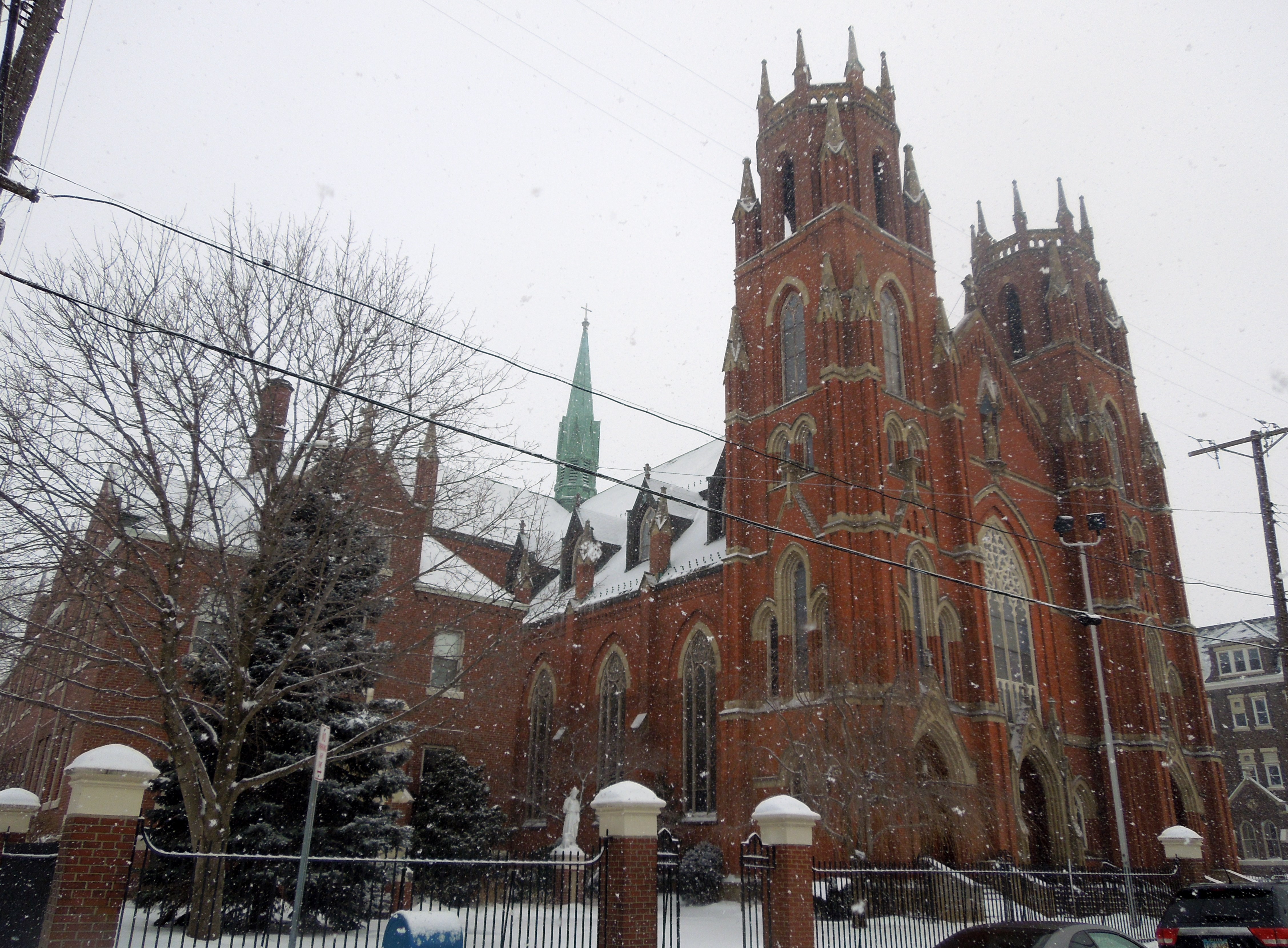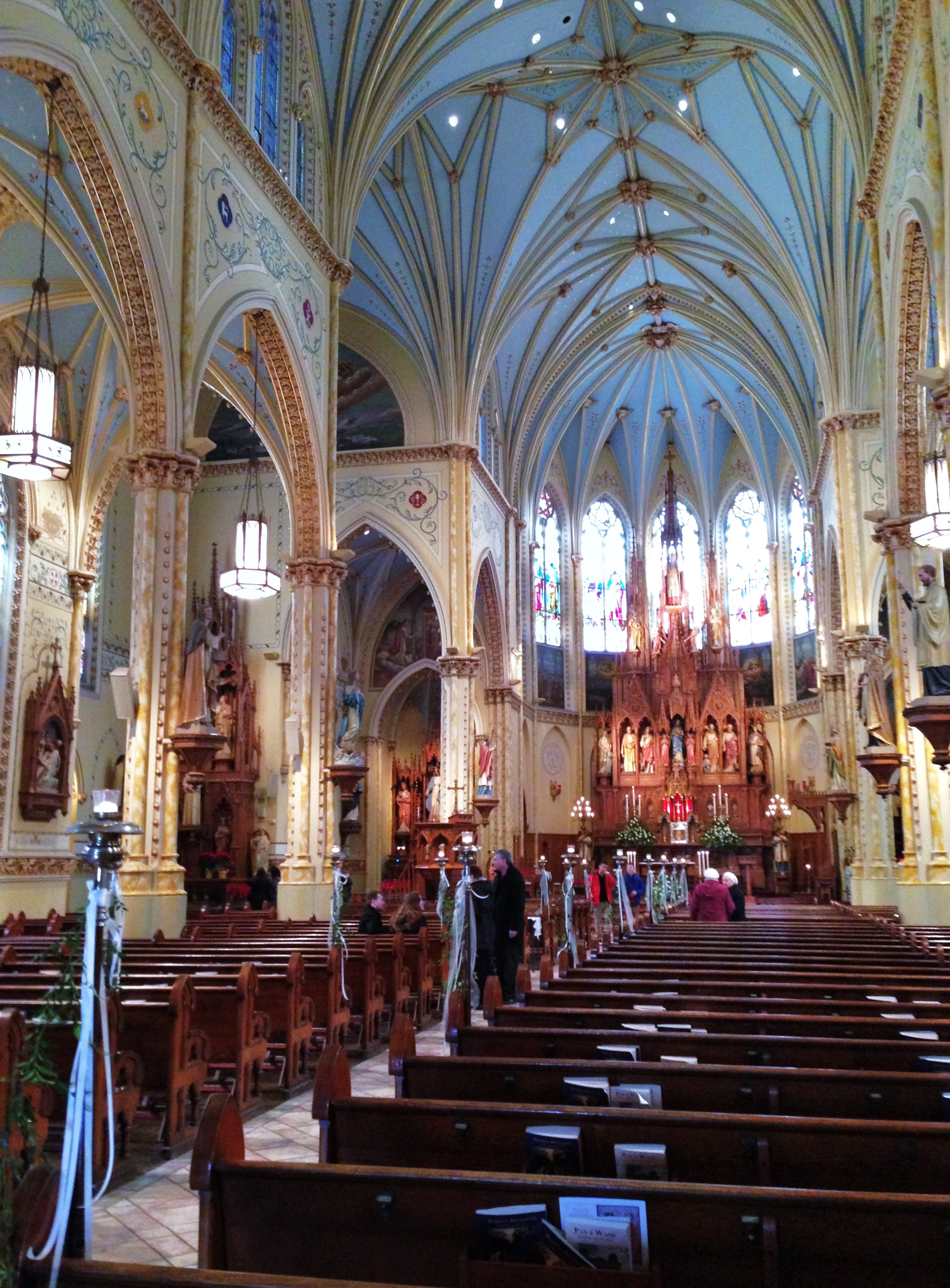 Then we spied St. Stanislaus Church; a beautiful Catholic cathedral in the middle of what is becoming a very run-down neighborhood. We were covered in snow and ready to get back on the roads before they got worse, but first I wanted to peek inside. So I opened the door and discovered that the 10:00 mass was being conducted in Polish. I was so awed that we had to stay.