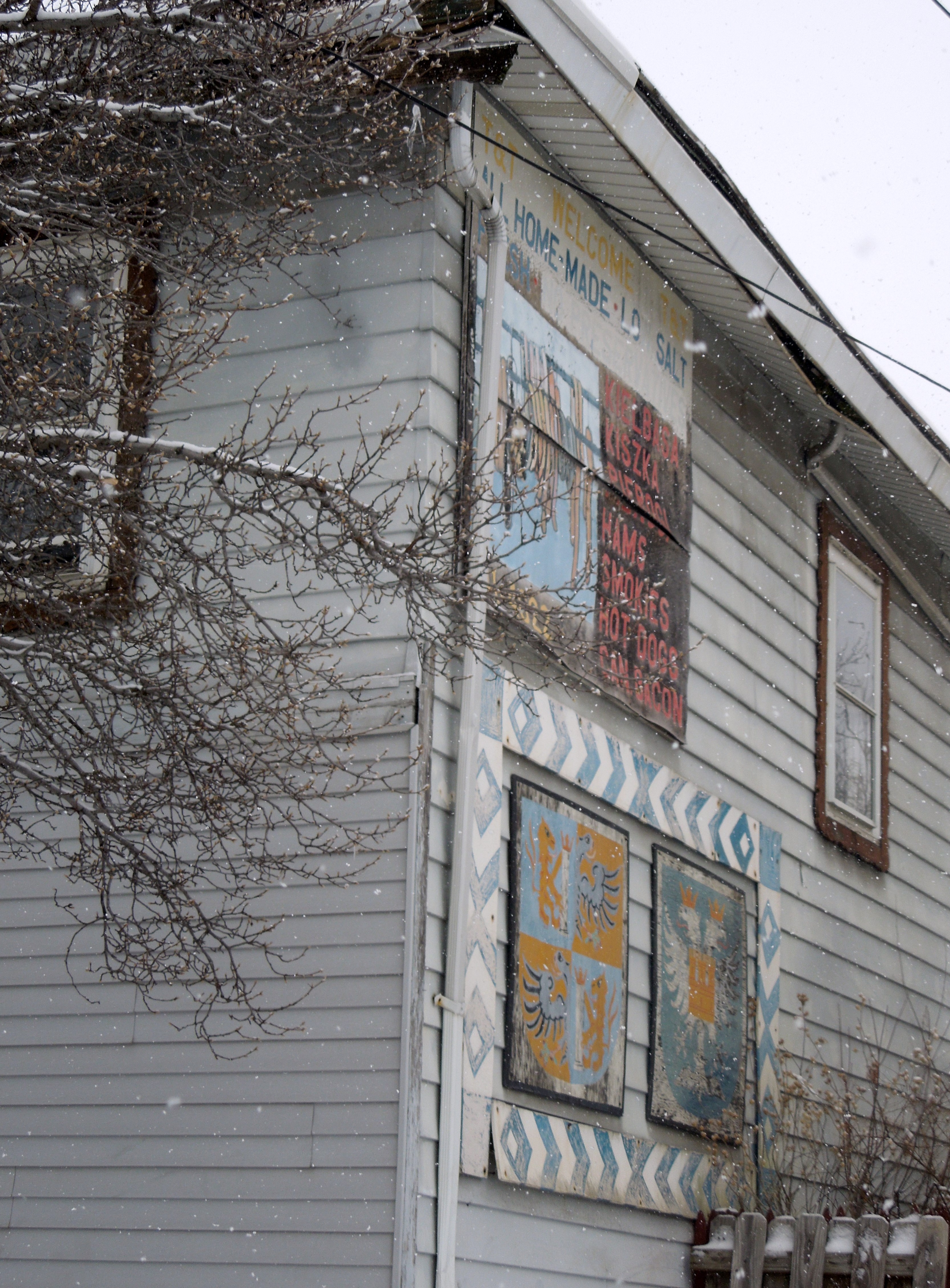 I’d already delved into Polish food at Sokolowski’s (which is in the Tremont neighborhood, not the Slavic Village area). So I was eager to explore the Slavic Village area where I expected to see signs in Polish and even hear some Polish being spoken. I was not disappointed, though a bitterly cold snowstorm kept us from wandering very far. Still, within a couple blocks of the Red Chimney Restaurant where we ate breakfast with hundreds of locals, we found everything we’d hoped for.
