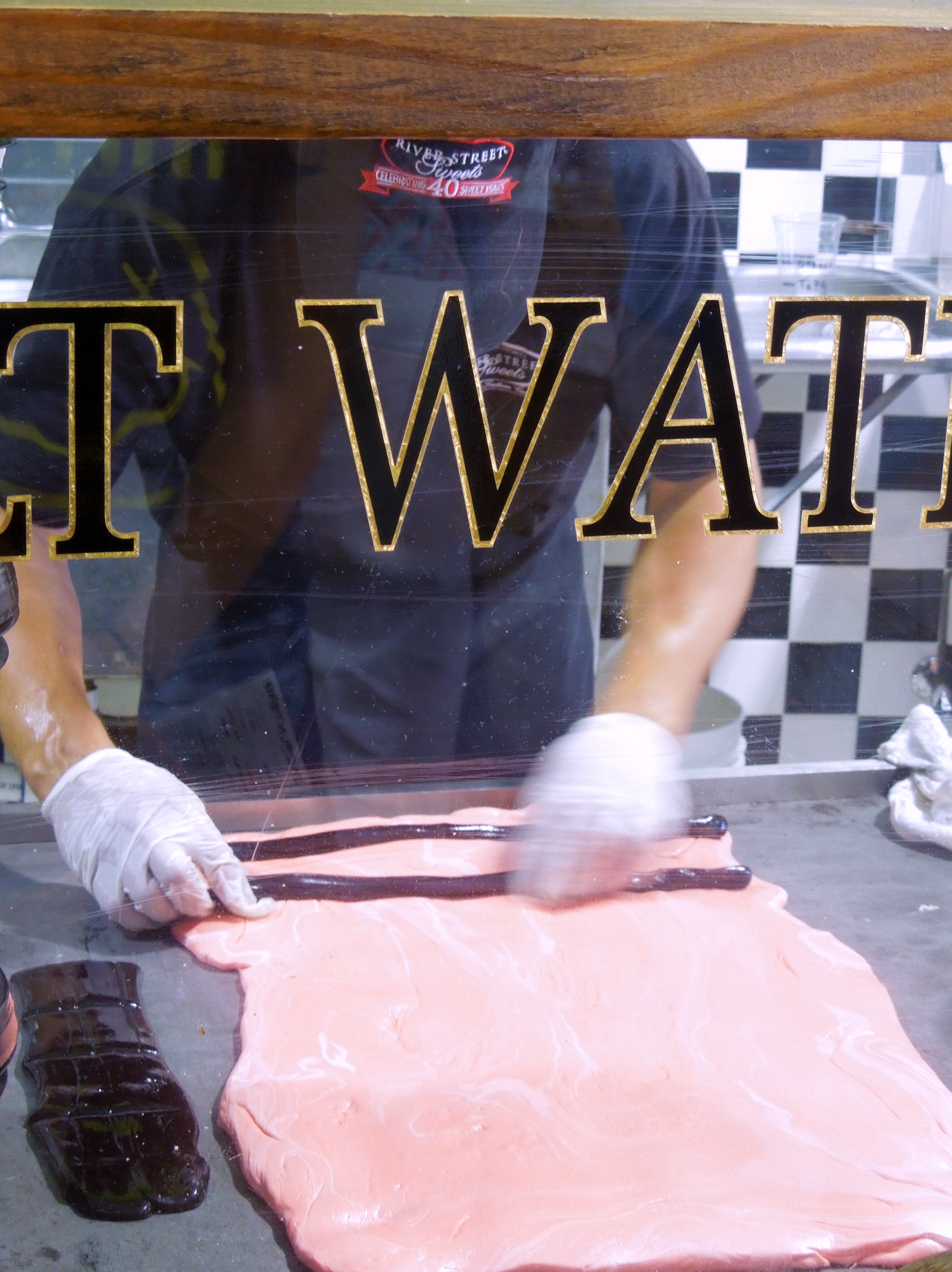 As he guided the huge wad of sugary goodness through the machine, he told us the brief history of salt water taffy. There’s actually no salt water in taffy. It got it’s name when a candy store in Atlantic City, New Jersey was flooded during a hurricane. All the taffy got soaked with ocean water, but the store owner sold it, jokingly calling it “salt water taffy.” The name stuck and may be part of why taffy is sold at so many beachside towns. Roam any boardwalk along the Atlantic and you’re sure to find someone selling salt water taffy.