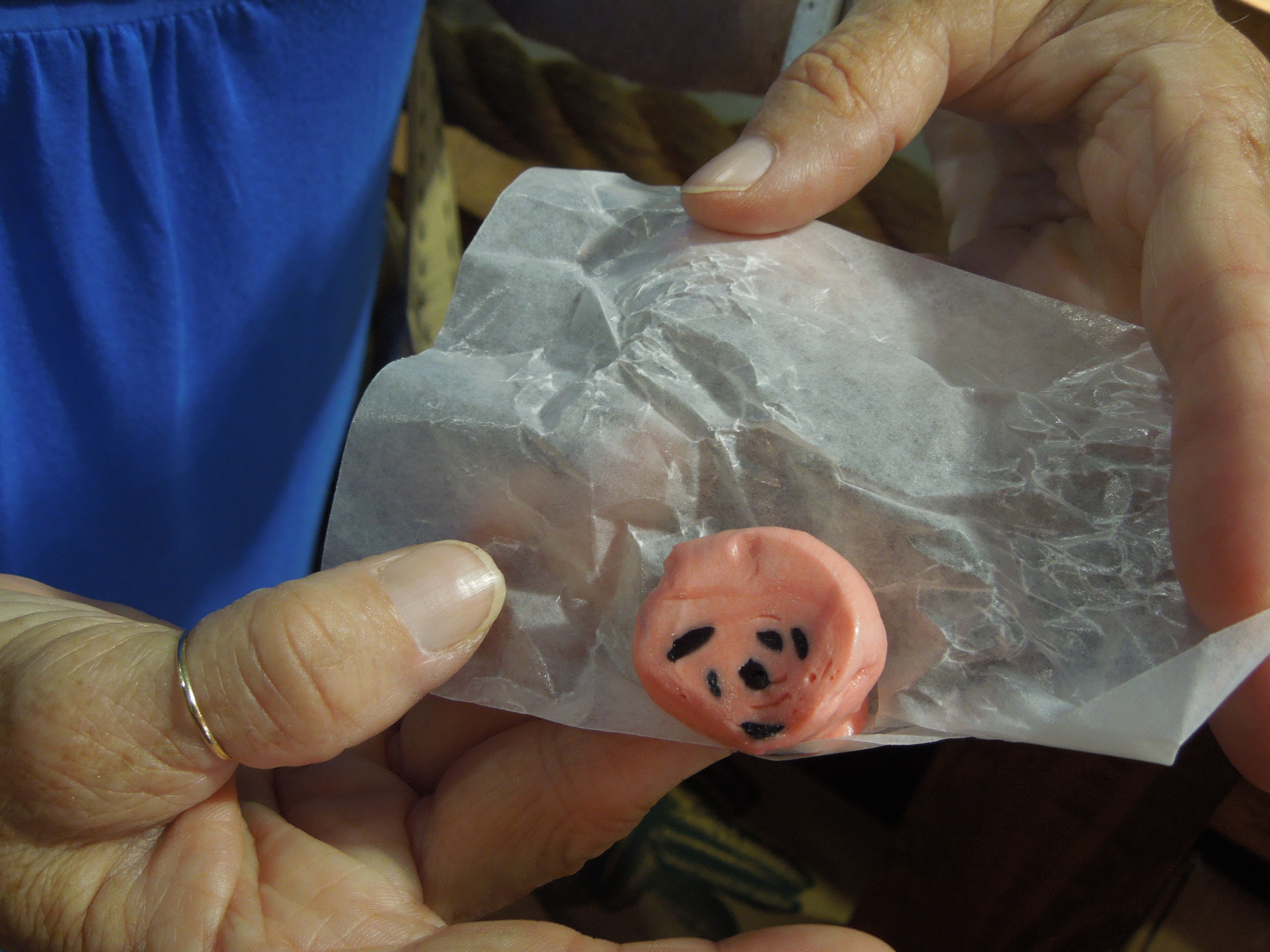 You probably wont have as much mess as that! She even cut it all into little pieces once it was “done” and we wrapped each piece in little strips of wax paper.