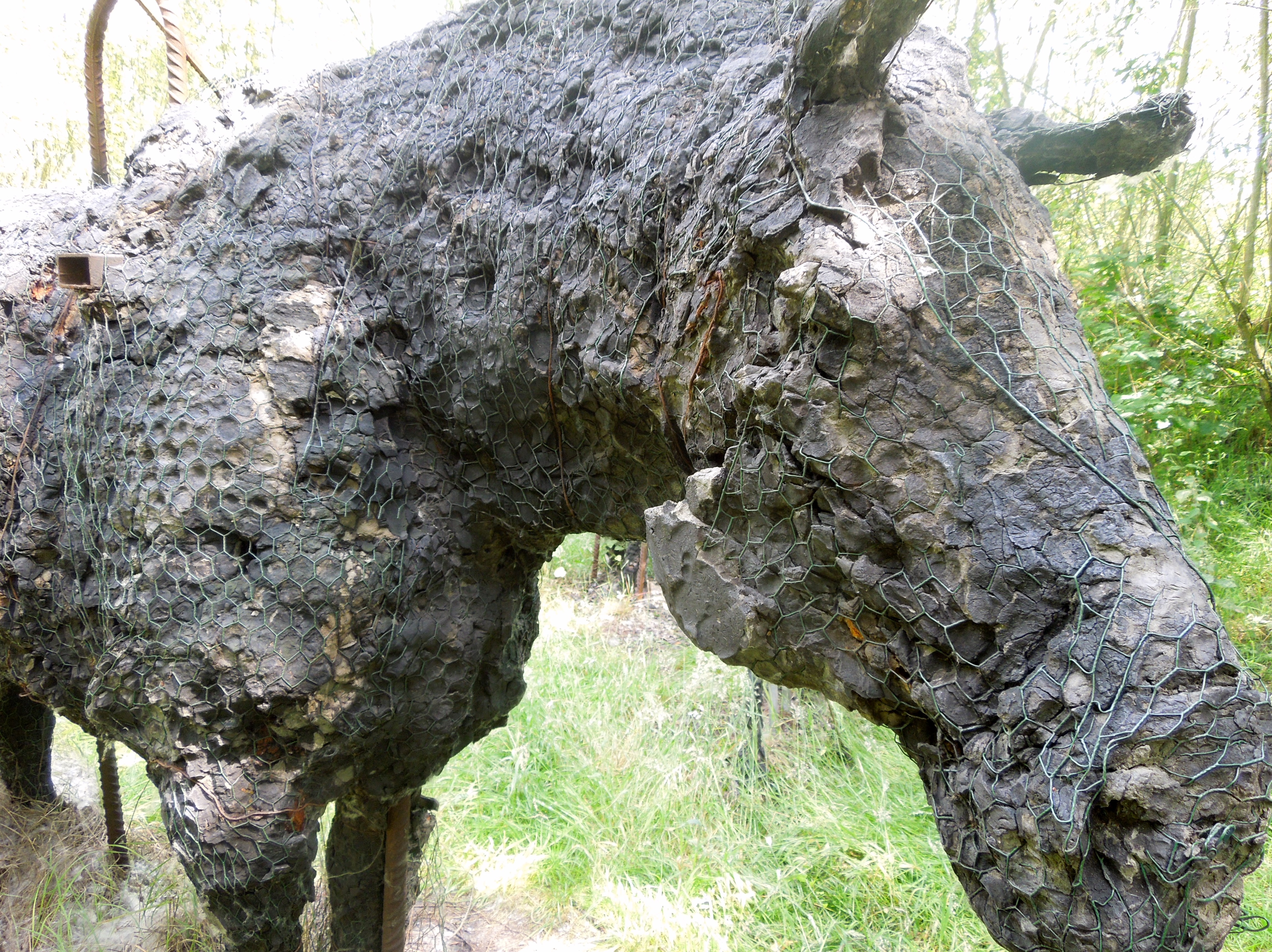 There was something startling about walking into a clearing and seeing a cluster of horses. It made me feel like I needed to be cautious; like they might charge toward me. Instead, I inched toward them. On closer inspection, I saw that the horses were beginning to disintegrate. The clay over chicken wire over foam was falling apart. I asked Geert about it later. I wondered whether the artist would consider fixing them up, but Geert said that the artist had no interest in reworking the piece. He’d moved on to other things — one of which was gardening. I met the artist later as he pushed a wheelbarrow full of plants through the museum and out to the back. Surreal.