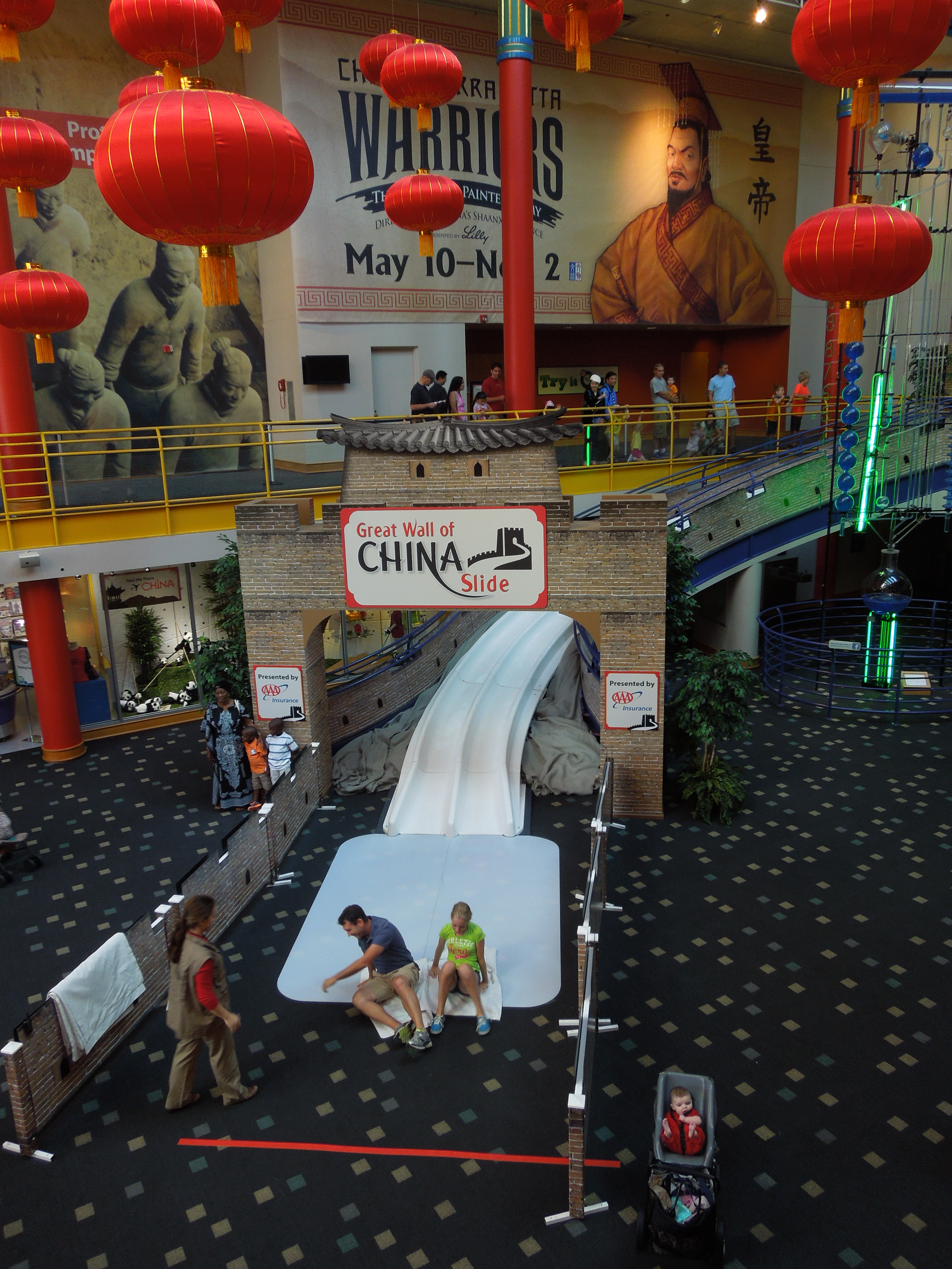 To begin with, the Children’s Museum had an entire exhibit devoted to Chinese culture. As soon as you walked in you saw red lanterns and a replica of the Great Wall that adults and children lined up to slide down.