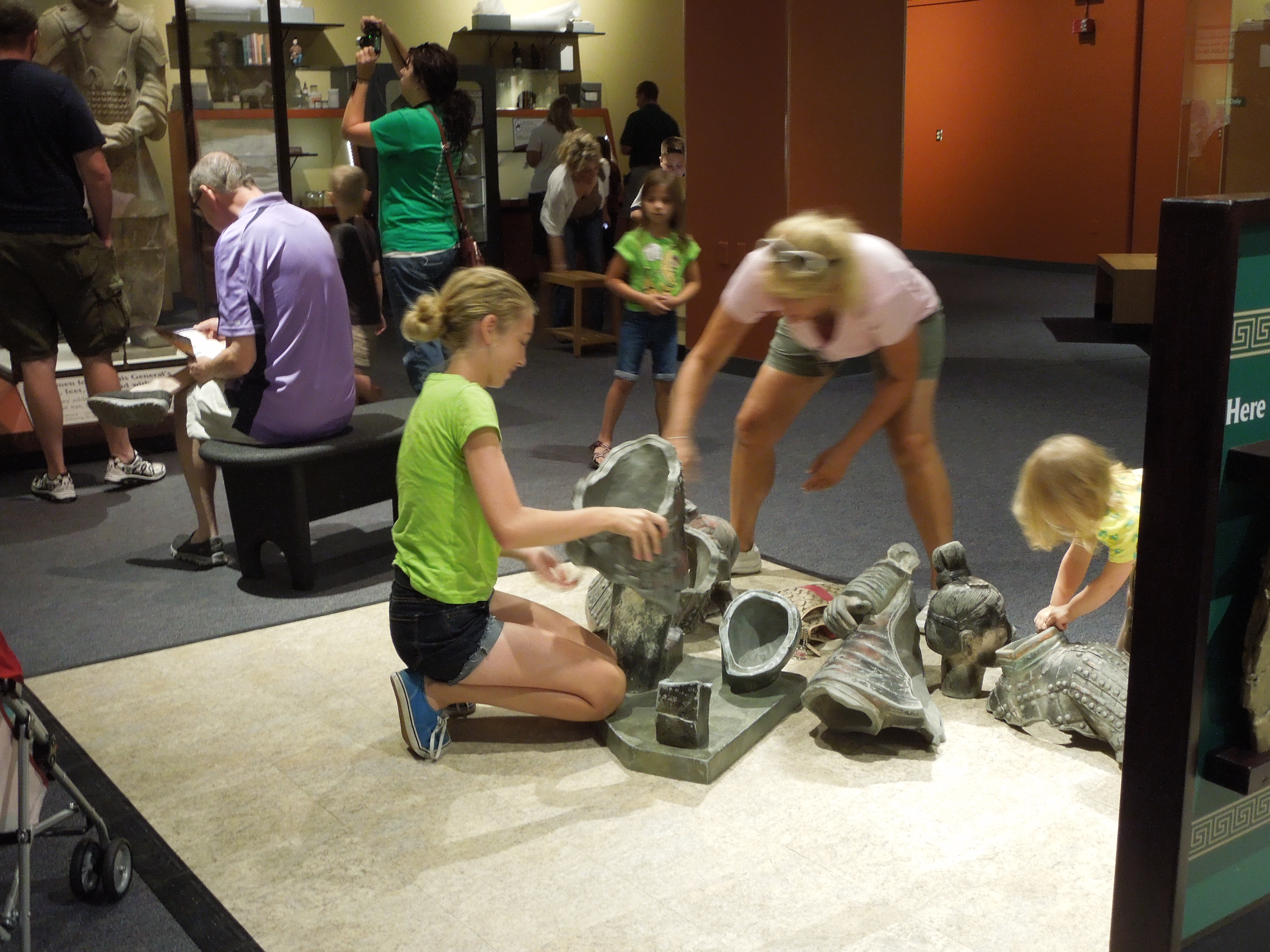 This museum swayed me to the interactive fun side. I think it was because the activities seemed to have some purpose. For instance, knowing that many of the real soldiers were found in pieces and had to be reconstructed made it more meaningful when we tried to put pieces together, too. Plus, there were displays behind glass with placards. Otherwise, it just wouldn’t be a museum, would it? 😉