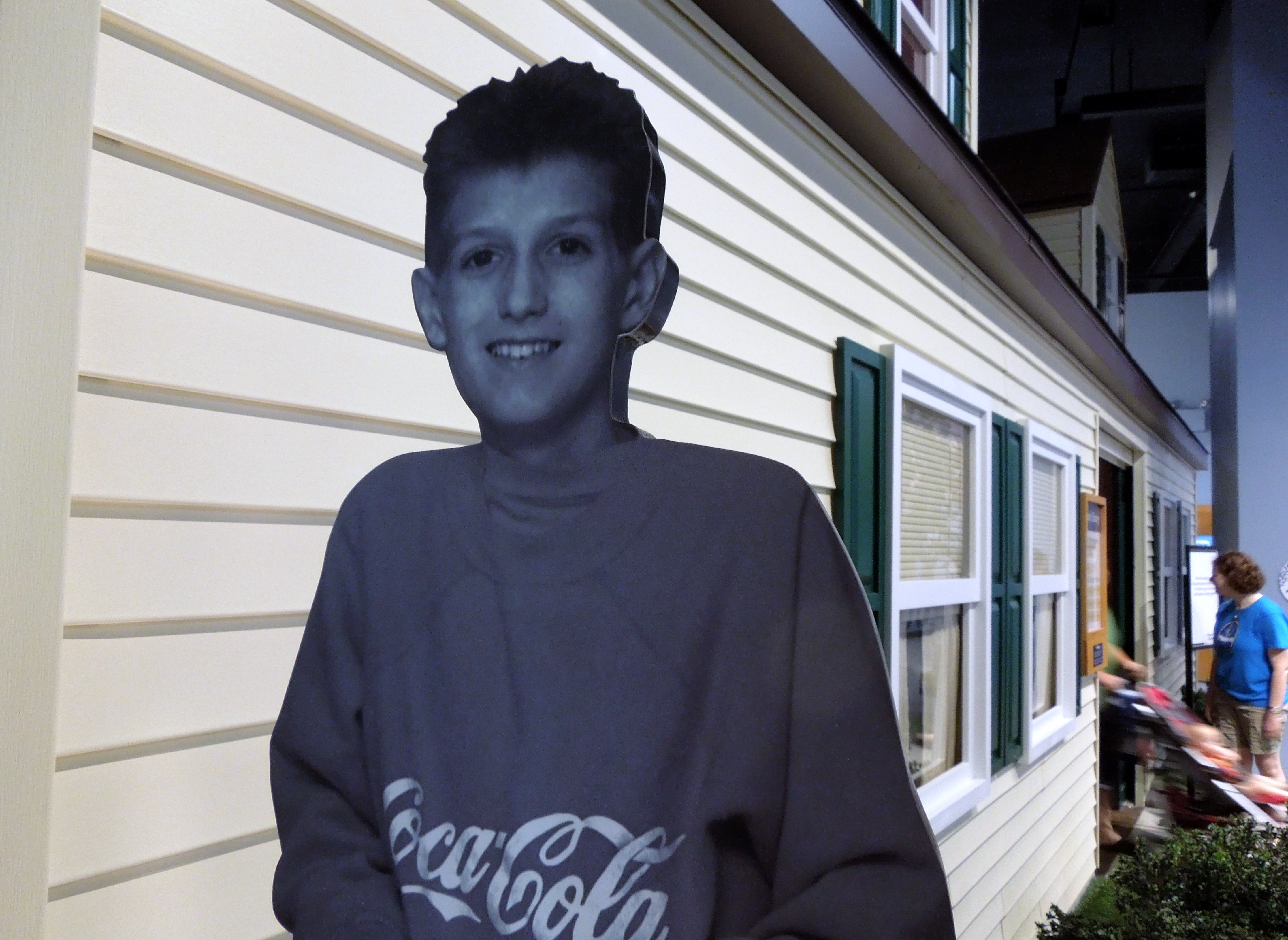 Ryan White in front of the replica of his house