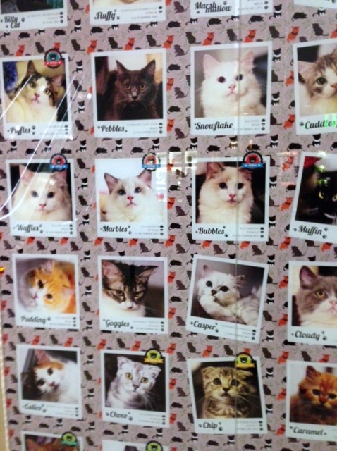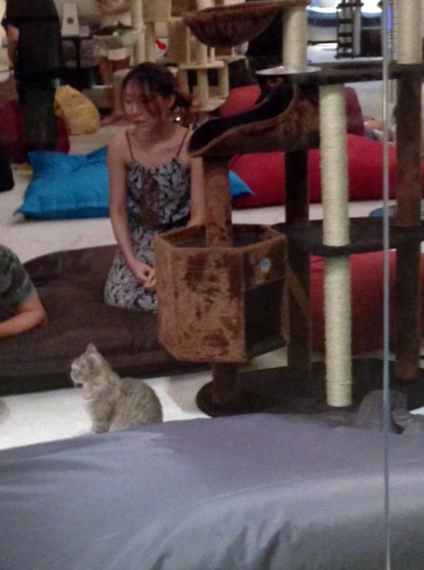 I’m writing this in past tense because when I just did an internet search to find out a few more details, I was alarmed instead to find notice that the cat café has been closed. Apparently in the two weeks since I passed by the cat café, several cats have died.