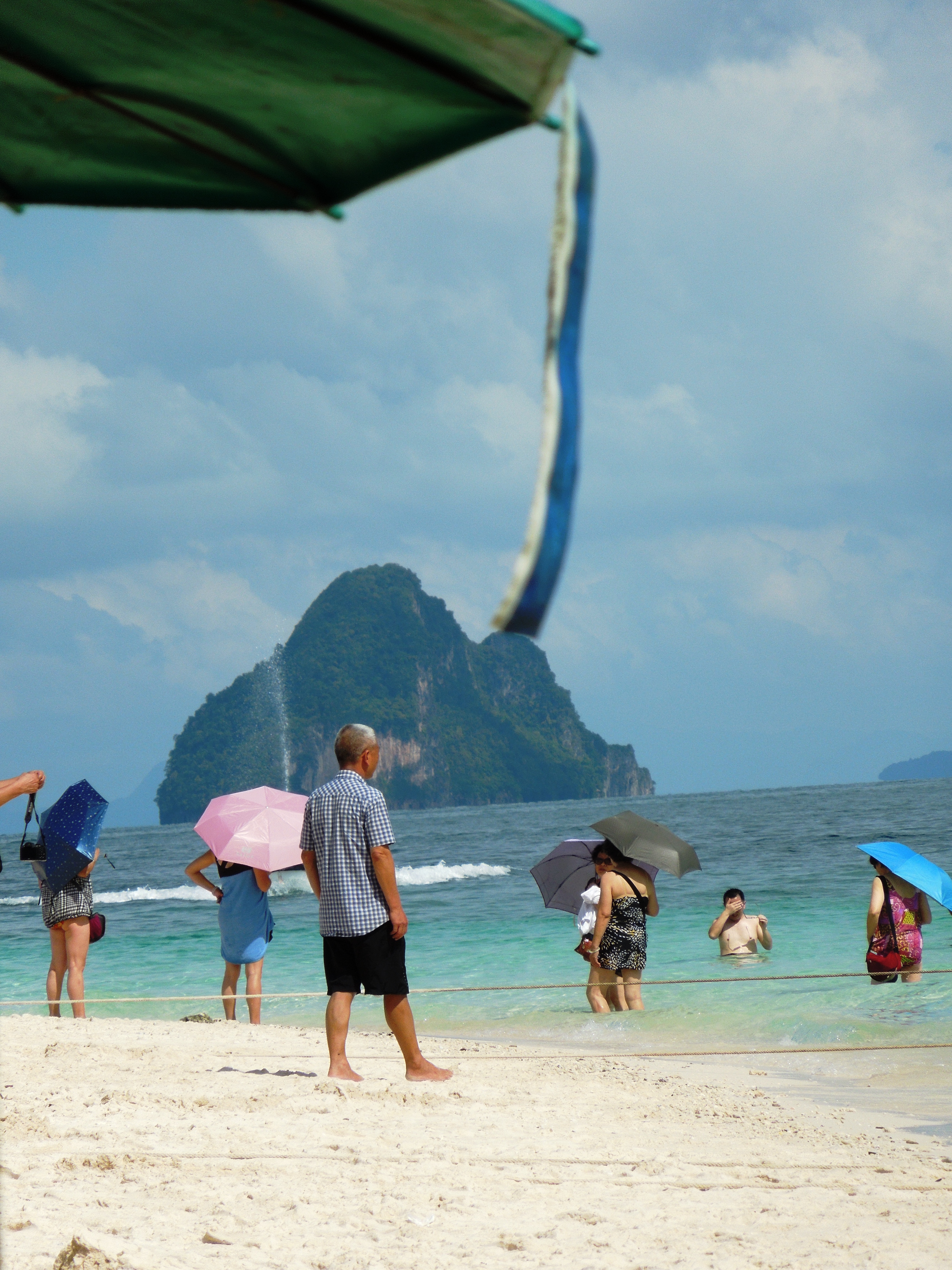 We spent 10 minutes here and 30 minutes there. 1 hour at Koh Khai beach that was about as big as my backyard and was packed full of people. The thing is, you can’t really swim much since dozens of speedboats are pulling up to shore. I just sat in a rented beach chair and watched people wade into the water.