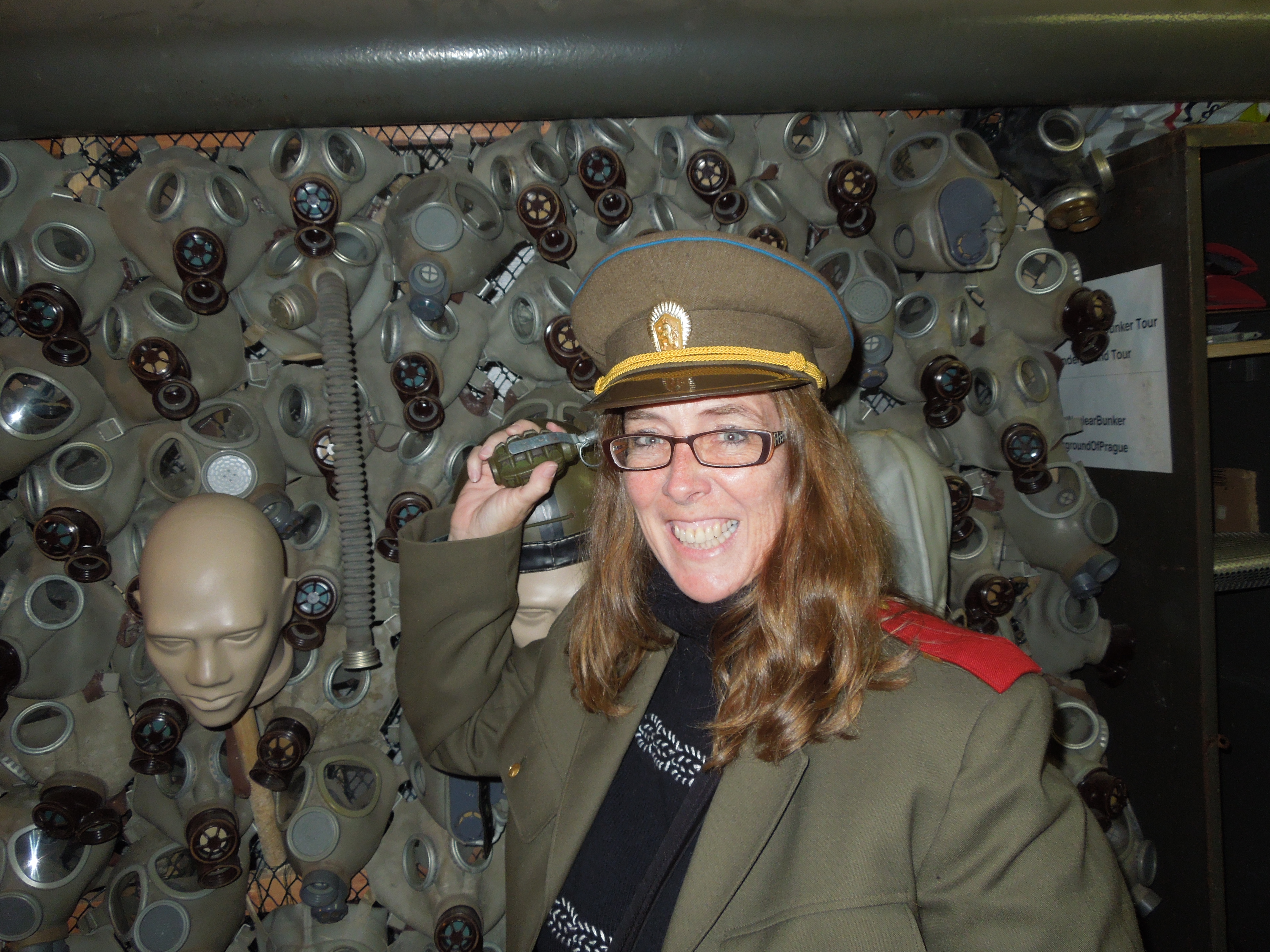 It was a fascinating glimpse into history and then we had the chance to don Czech military jackets and hats and pose for pictures with hand grenades and rifles if we wanted to. Of course I wanted to. (You’re coming to learn that I’m a master of ridiculous posing.)