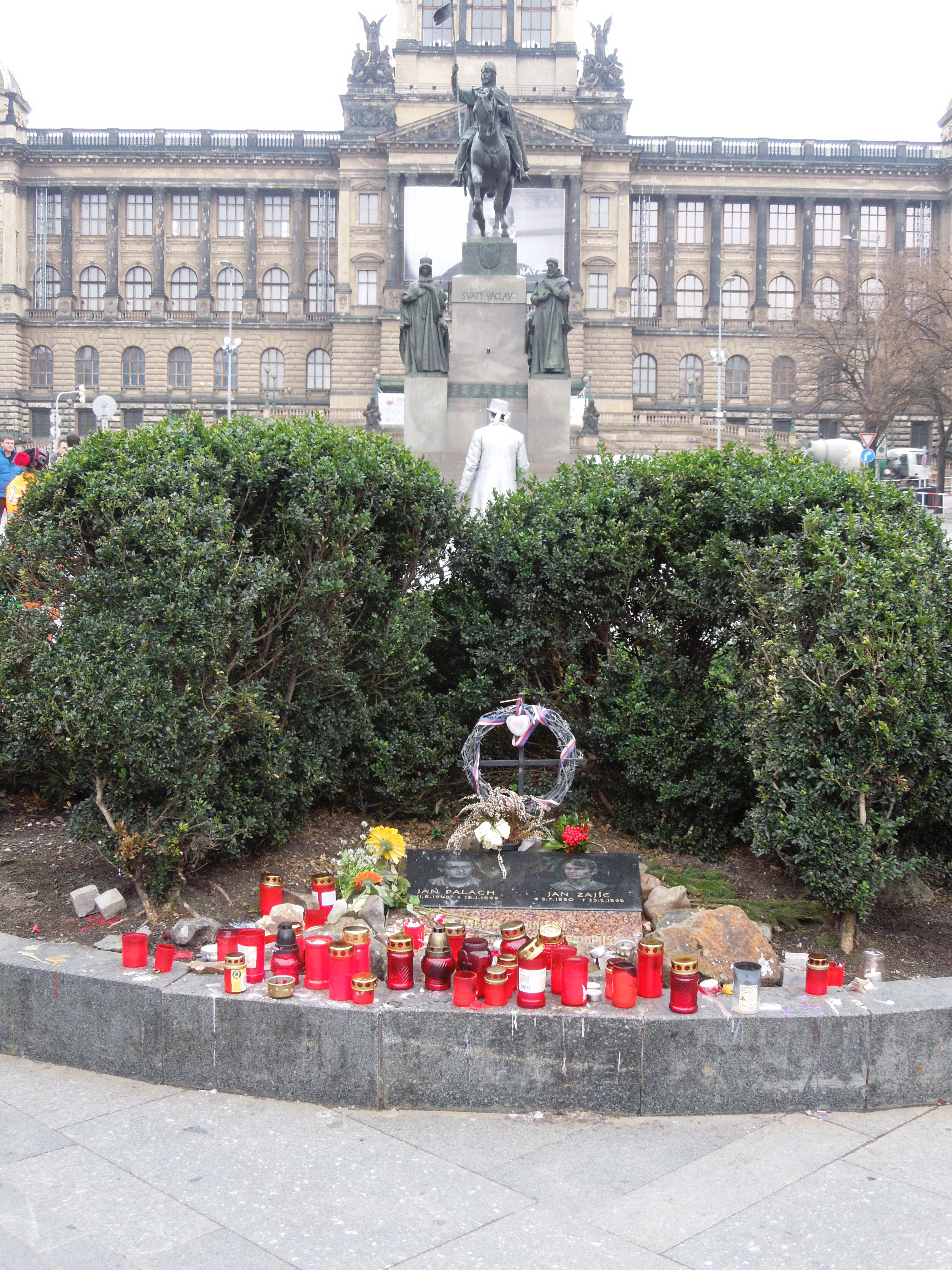 I won’t go into many details. You really need to hear it for yourself as you stand on the streets of Prague where so many monumental events took place. Like Jan Palach’s self-immolation in 1968 in Wenceslas Square. As it happened, I was here on January 19th which is the anniversary of the day this young man set himself on fire publicly. There is a monument honoring him on the Square and people brought flowers and lit candles to remember him.