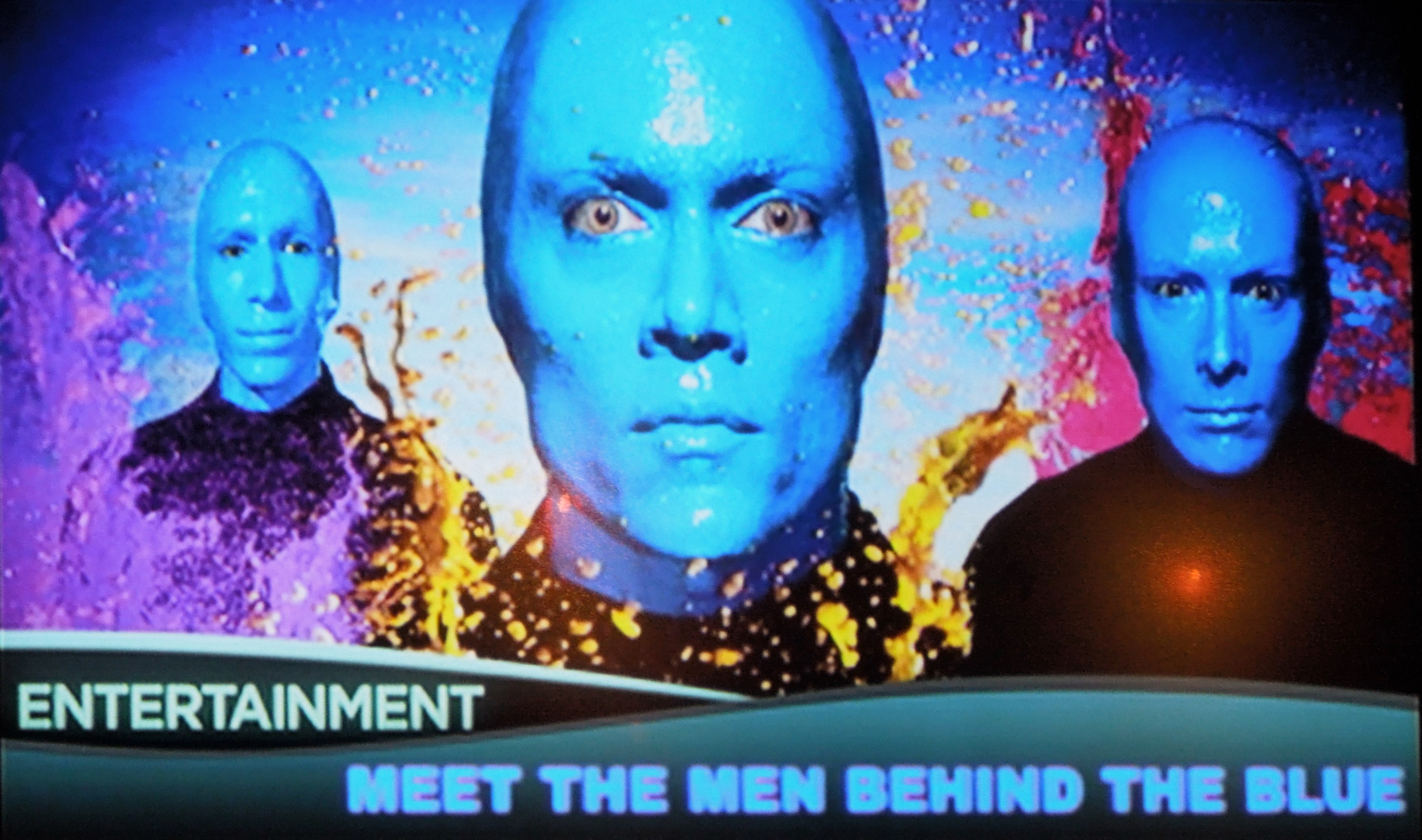 One of the best features of the Norwegian Cruise Line’s Epic ship is its entertainment. Part of your fare includes the chance to see the Blue Man Group in their theatre. For those unfamiliar with the Blue Man Group, they are a trio of performers/drummers who never speak during the show but do performance art that I can best describe as social experiment. I was enthralled throughout most of the show and was excited to discover that on our last day at sea, the Blue Men were offering a behind-the-scenes interview session.