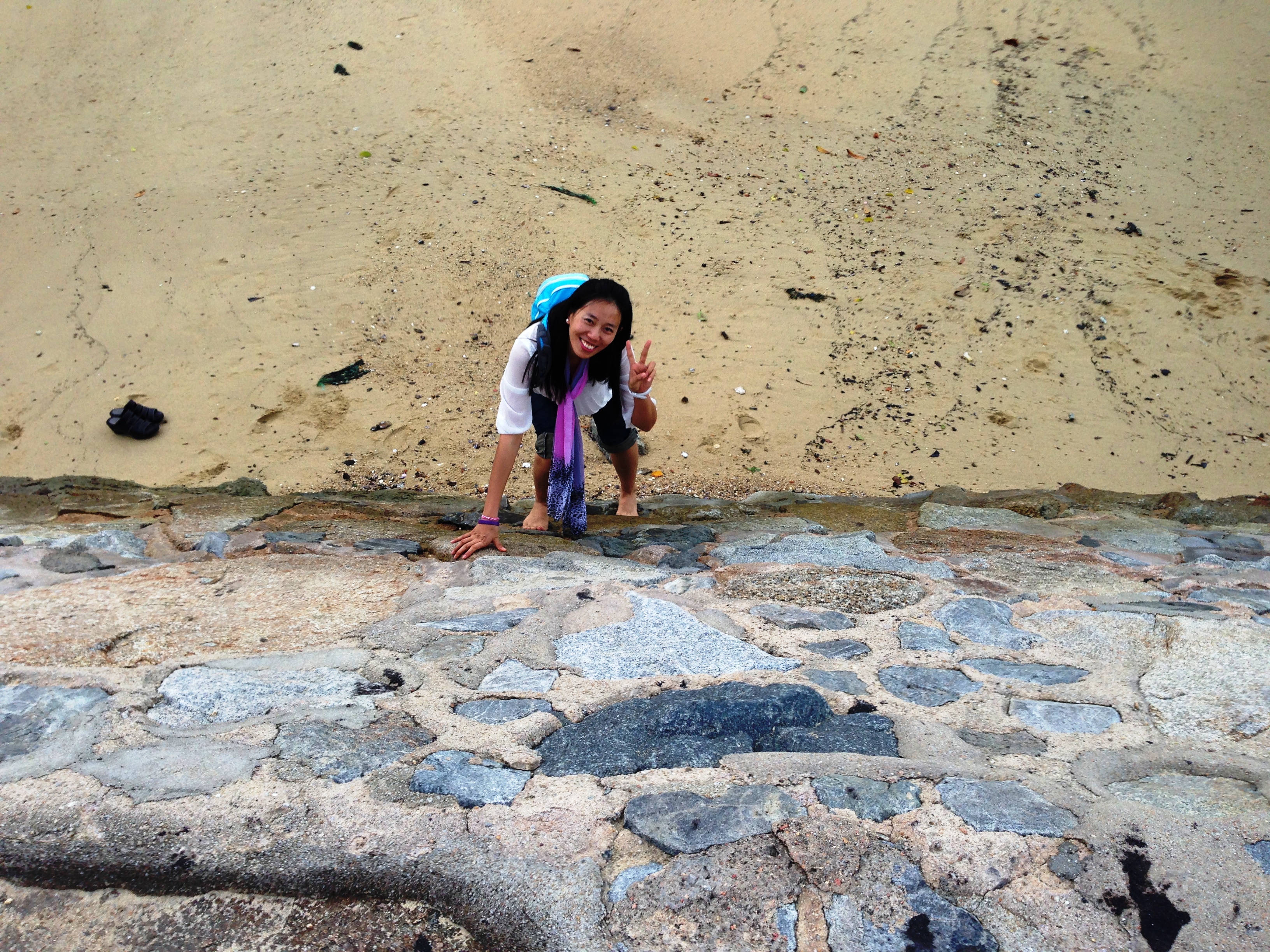 We finished our week-long training class and she said she wanted to go to the beach. It’s not something I associate with Singapore, but was certainly willing to go there to decompress after a long work week. So we went and climbed up this small rock wall. (How’d she sucker me into going first?)
