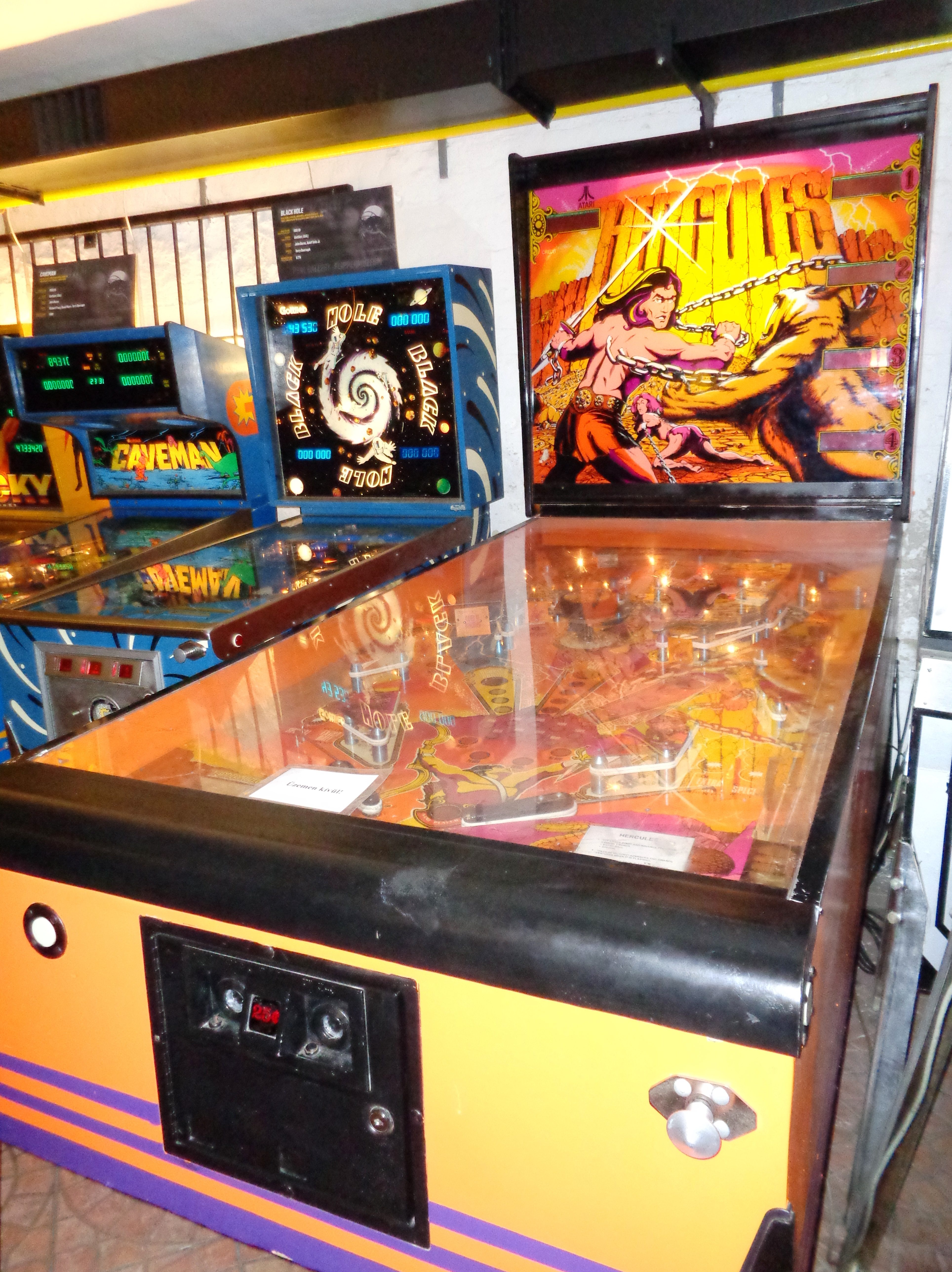 Of special note is the Hercules game. It is the biggest pinball machine ever made. The balls are the size of billiard balls and while the game can’t be played anymore, it warrants a view. It dwarfs the machines around it. A fun fact: it took 170 lbs. of packing materials to ship it to Europe. I can’t even imagine.