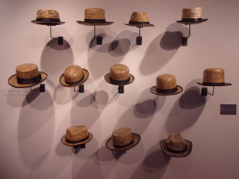 These straw hats represent the hordes of onlookers surrounding a lynching. You can see men in hats in one of the postcards below.