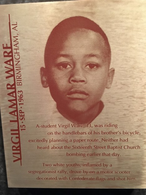 The Southern Poverty Law’s Civil Rights Memorial Center overwhelmed me with its stories. It was the only place I remember visiting in Montgomery where we had to go through security as we entered the building. And then we were free to explore and interact with the displays inside. I took a million pictures. I’ll let a few of the pictures speak for themselves.