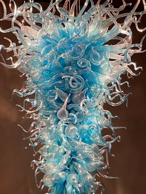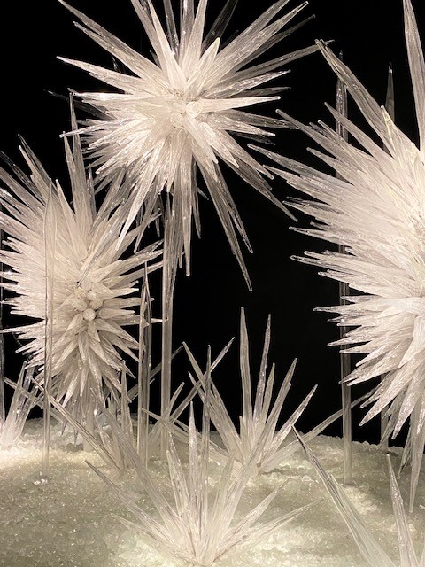 While there are plaques describing the sculptures in each room, it wasn’t until I watched videos in the theater that I felt like I understood what he was trying to create with his glass spears, balls, chandeliers, and ornamental swirls of glass tubes.