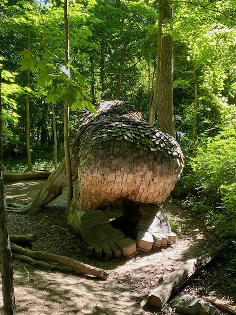 What a perfect spot to feature some of the imaginative art of Thomas Dambo.