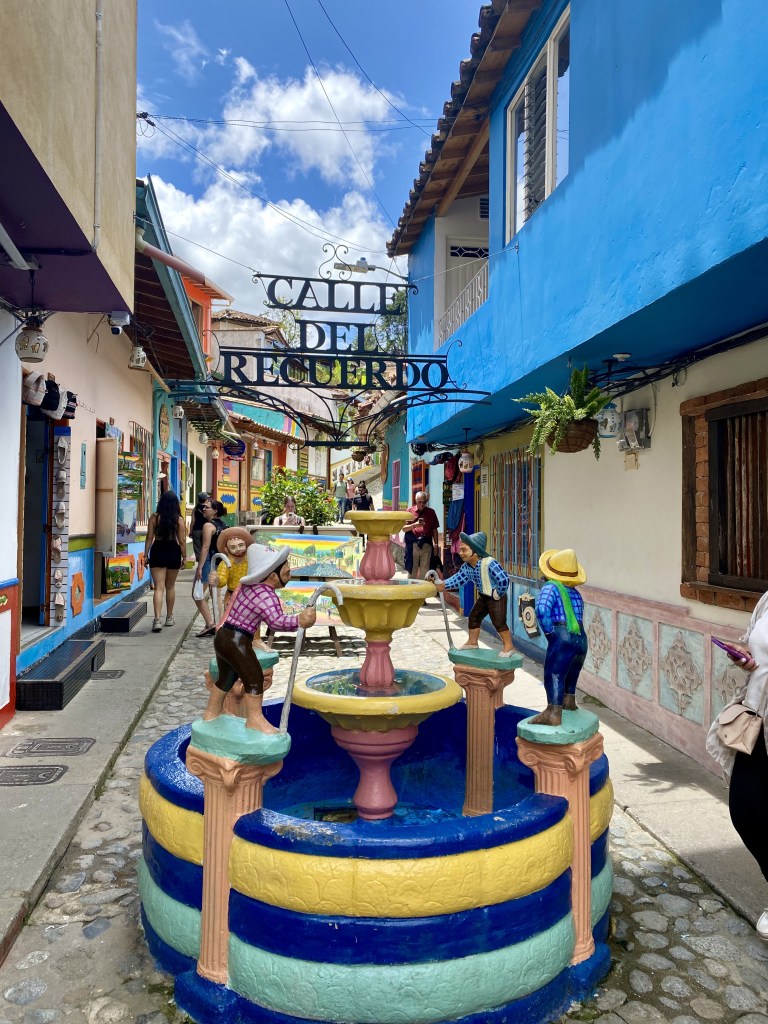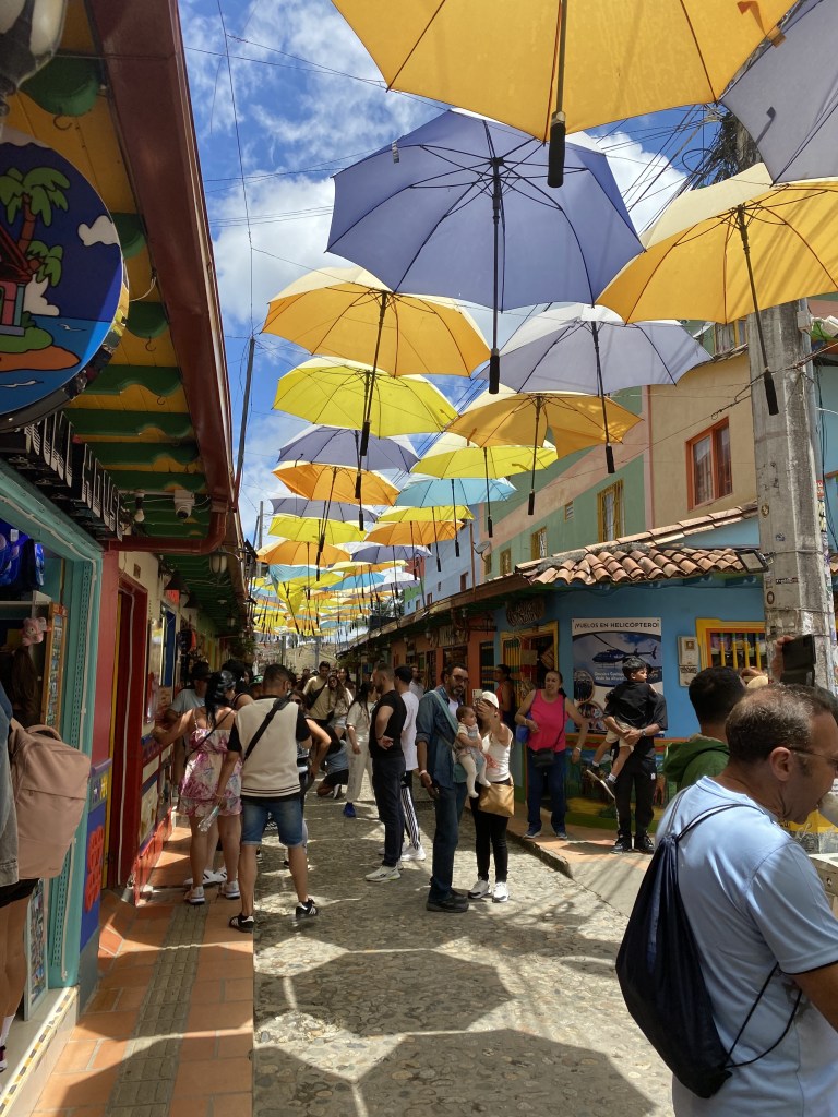 After visiting the Rock, we spent time strolling under the whimsical umbrellas lining one of the colorful alleyways that earned Guatape the label “of “2nd most colorful town in the world.” Colors decorate all the buildings, inside and out! The vivid combinations were so festive!