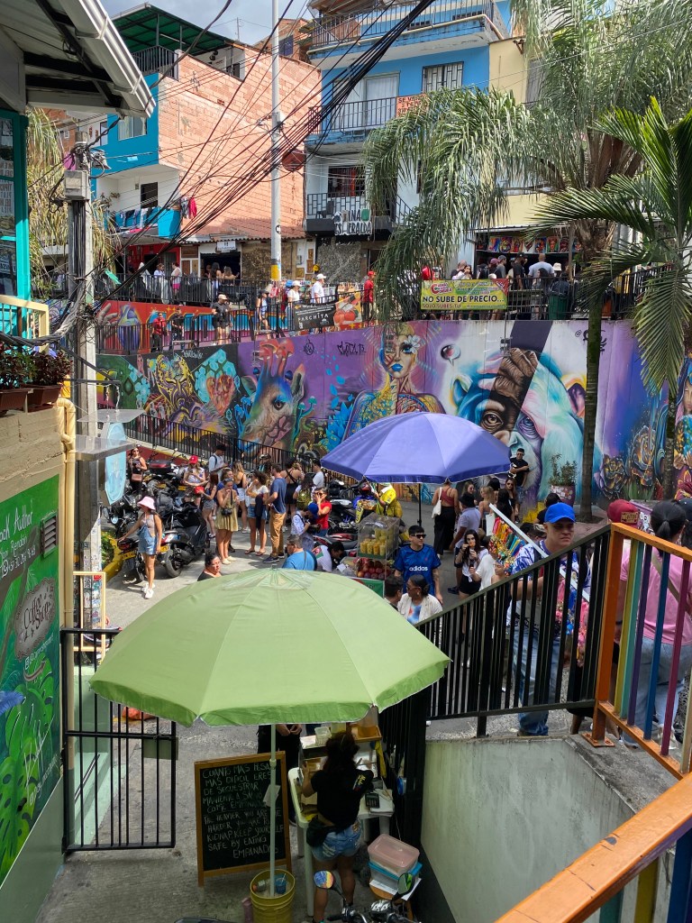 Oddly enough, as I wandered lost through the crowded streets looking for my tour group, I thought I’d seen enough of Comuna 13 even if I didn’t get to take a tour. But I was wrong. I found my tour group (I had to turn down a side street, which the Uber driver probably told me, but I didn’t understand) and I am SO GLAD I did! My day in Comuna 13 was my favorite experience of all in Medellin and where I’ll spend more time, if I ever go back. I, and everyone else in my tour group, commented more than once that it was a crazy, amazing place unlike anyplace else we’d ever been. We tried to think of other spots like it in the world, but couldn’t. Comuna 13 is one-of-a-kind. Unless you know differently?